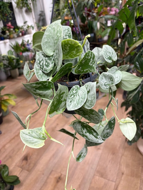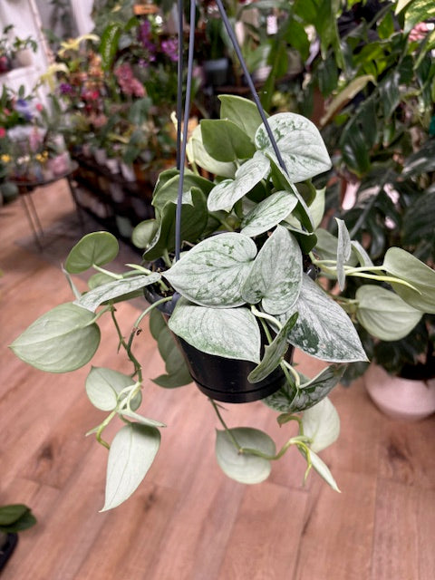 One of the most sought after characteristics of Scindapsus Pictus Silvery Ann is it’s foliage- matte green with silver splashes. Although the leaves look similar on all varieties of Scindapsus, they do have a differentiating factor- Silvery Ann‘s leaves have many more of silver markings and sometimes entirely silver leaves.The heart-shaped leaves are velvety to the touch and matte in texture. Great for beginners.
