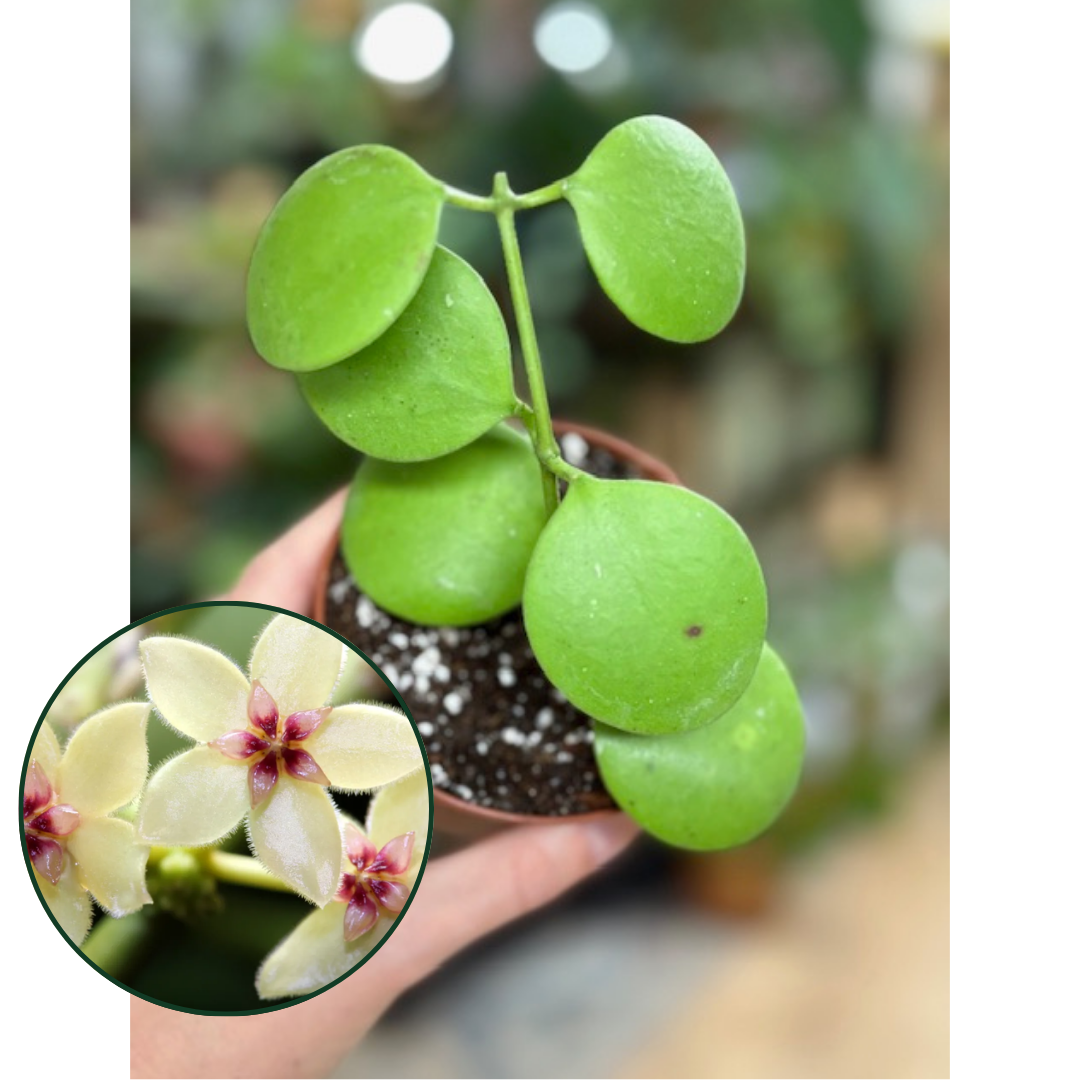 Levelei nagyon bájosak, tökéletesek kerek gomb alakúak. Színük sötétzöld, sok fény hatására világos lime zöld tónust vehet fel. A virágok aprók, csillag alakúak, és sűrű, gömbölyű fürtökben nyílnak. Színük a fehértől a halvány sárgás-krémszínűig terjedhet, a korona (a közép) pedig élénk rózsaszín vagy vöröses színű. Kellemes, édes illatuk van.