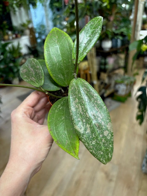 Ez a Hoya egy viszonylag ritka, de nagyon kedvelt fajta, amelyet eredetileg a Fülöp-szigeteken gyűjtöttek. A levelek közepes méretűek, hosszúkásak, lándzsa alakúak, ezüstös-fehér hálós mintázattal. A növény levelei vastagok és húsosak. A leveleken látható ezüstös splash erős napfény hatására rózsaszínessé válik.