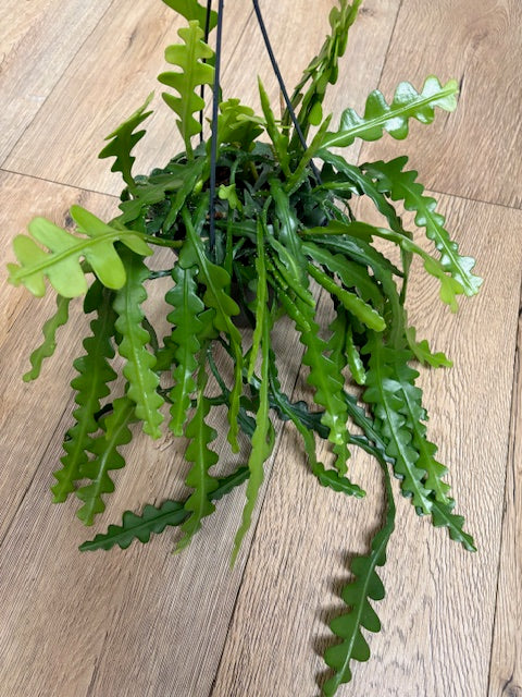 This unusual cactus originates from the rainforest of Mexico and has uniquely shaped long, flat stems resembling a fishbone, hence its name! The stems will begin by growing upright but as they grow longer will eventually trail down. This is an epiphytic plant meaning it grows aerial roots as in its natural environment the fishbone would anchor to a host plant.