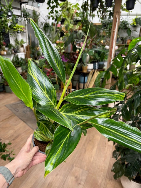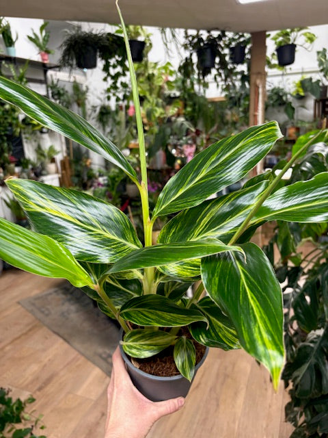 Az Alpinia Zerumbet egy lágyszárú évelő növény a gyömbérfélék családjából. Latin nevét Prospero Alpino olasz botanikus után kapta. Kelet-Ázsia trópusi erdőiben őshonos. Élénkzöld és arany csíkos levelei káprázatosak.