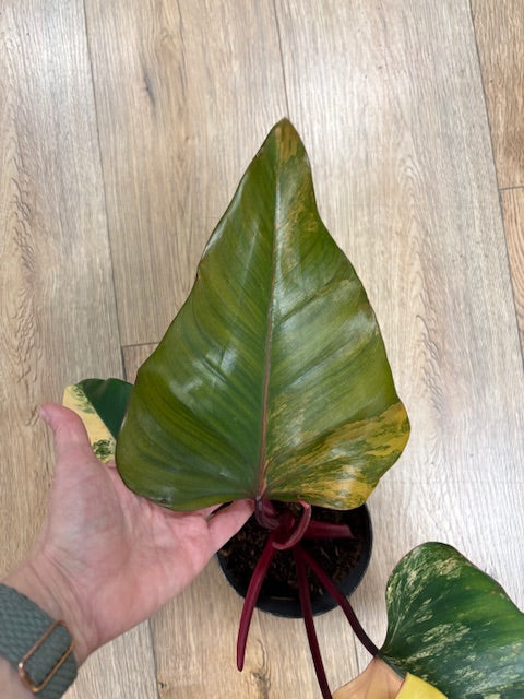 A Philodendron 'Strawberry Shake' az egyik legkeresettebb és leglátványosabb philodendron. Ez a növény a Philodendron erubescens egy tarka (variegata) hibridje, és a nevét a lenyűgöző színkavalkádjáról kapta, ami a fehértől a krémszínen és a sárgán át egészen a mélyvörösig és a málnarózsaszínig terjed.