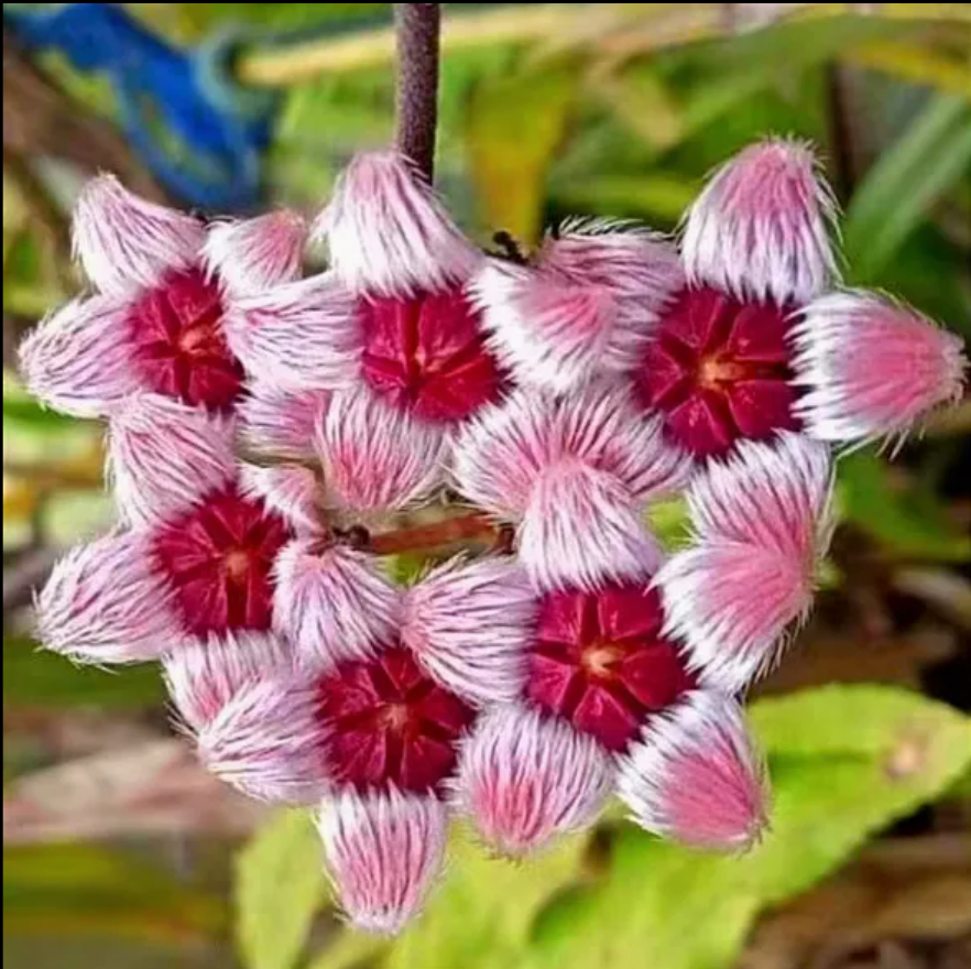Virágzata nagyon egyedi, gyakran ezért is gyűjtik. Apró, szőrös, bolyhos külső szirmok és élénk magneta színű középső rész (korona) alkotják.