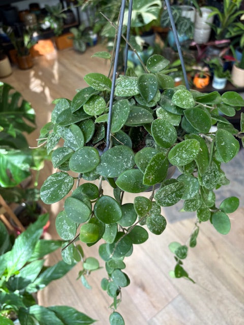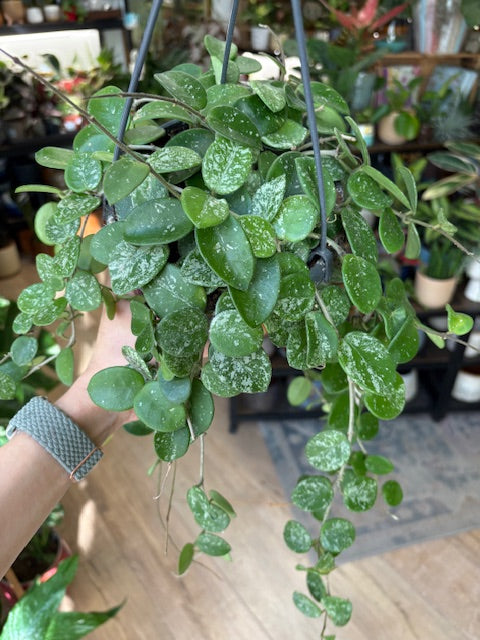 A "Splash" jelző a hibridnek azon egyedeit jelöli, amelyek a Hoya carnosa és a Hoya serpens tulajdonságait ötvözve rendkívül gazdag ezüstös mintázatot mutatnak. A levelek viszonylag kicsik, kerekdedek, és kissé húsosak (a serpens kicsi levelét és a carnosa húsosabb textúráját örökli). A lombozat sötétzöld. Fő vonzereje az, hogy a levélfelületet nagymértékben borítja az ezüstös "splash" mintázat, ami a leveleket szürkés-ezüstössé, csillagporos megjelenésűvé teszi.